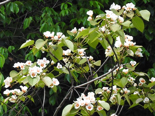 花期は5-6月で、枝先に円錐花序をだし白い花を多数付けます。雌雄同株、雌雄異花です。