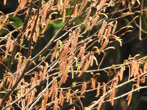花は葉の展開と共に4~5月に咲き、雄花序と雌花序を垂れ下げます。