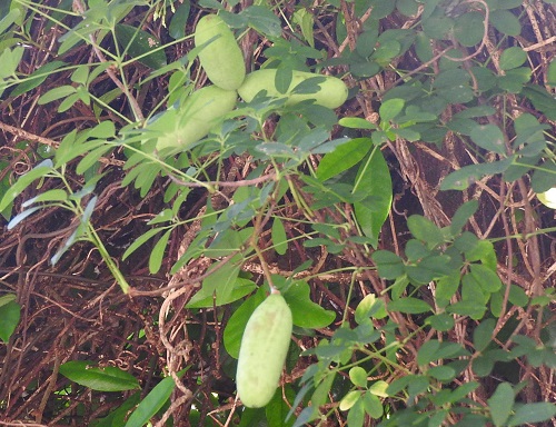 林縁や林内に自生し、高木にも登ります。いろんな樹に絡み付いているのをよく見かけます。