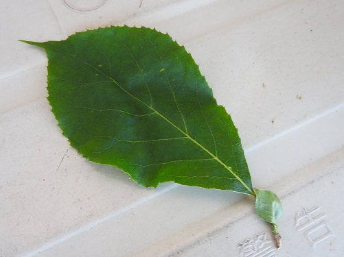 葉は互生し、縁には内曲する突起状の鋸歯が特徴的です。