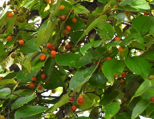 果実は直径6~8mmの可愛らしい実で、10月頃赤褐色に熟します。