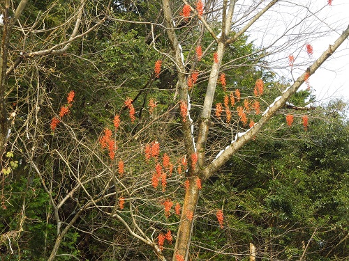 (未観察ですが)開花時期は4~5月で、枝先に20~30cmの大きな円錐花序が垂れ下がり、淡黄色の小さな花を多数つけます。