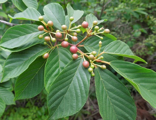 花嚢は初めは緑色で徐々に赤みを帯びていき黒く熟します。