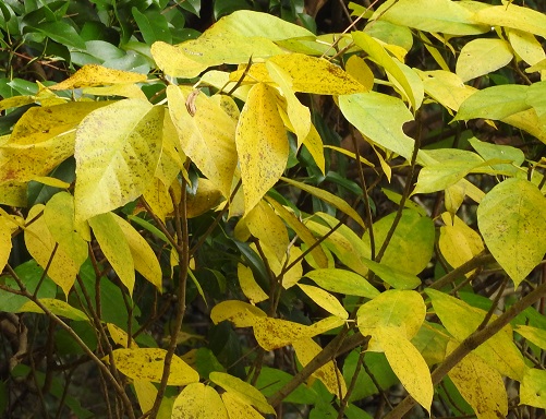 黄葉する樹は多いのですが、イヌビワは里山で黄葉する代表的な樹木の1つです。
