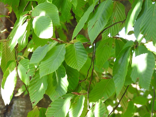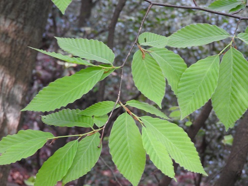 ブナとの違いは、葉がやや広くて側脈が多い点で、ブナの側脈は7~11対、イヌブナは10~17対あります。