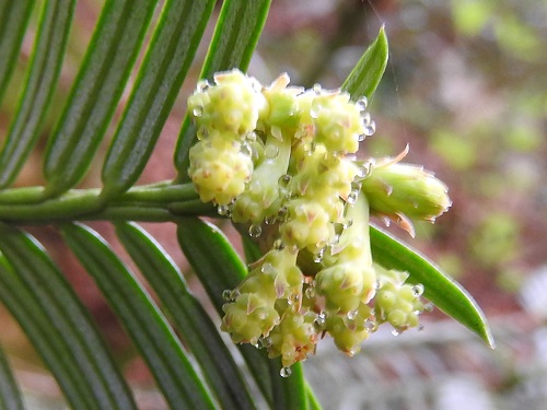 カヤは雌雄別株まれに同株で、花期は4月下旬~5月上旬です。