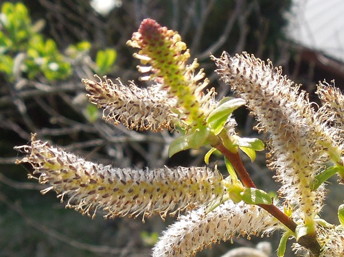 開花時期は3~5月で、葉の展開に先だち長さ3~5cmの尾状花序を付けます。雄花序の方が雌花序よりやや太い。