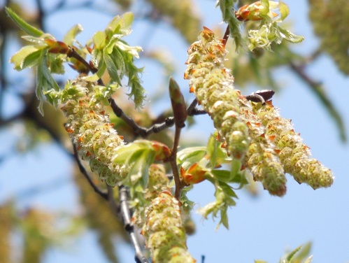 開花時期は4~5月で、雄花序は前年枝から垂れ下がり、黄褐色、雌花序は本年枝の先に付けます。