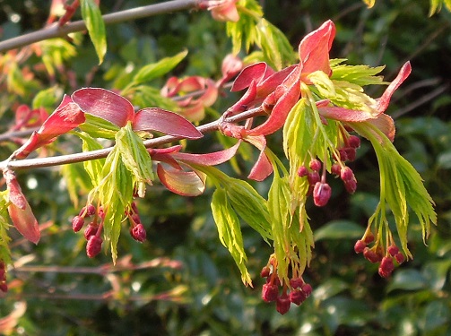 通常イロハモミジと言えば秋の紅葉を思い出す方が多いと思いますが、カエデ類の花が可憐で一度見れば毎年気にかけたくなる花になると思います。