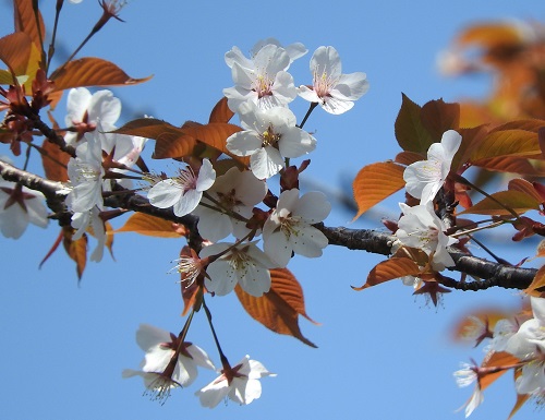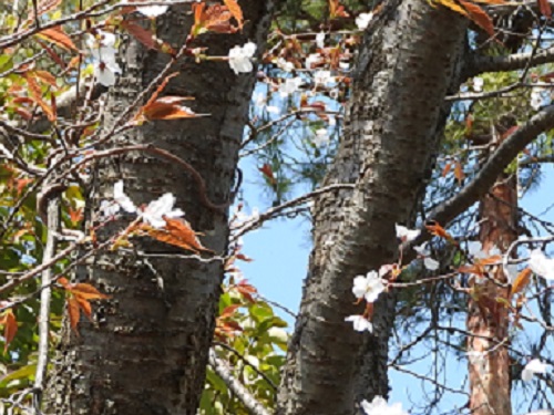 オオヤマザクラの花の色はヤマザクラより濃い上品なピンク色です。この写真の花は殆ど白色です。