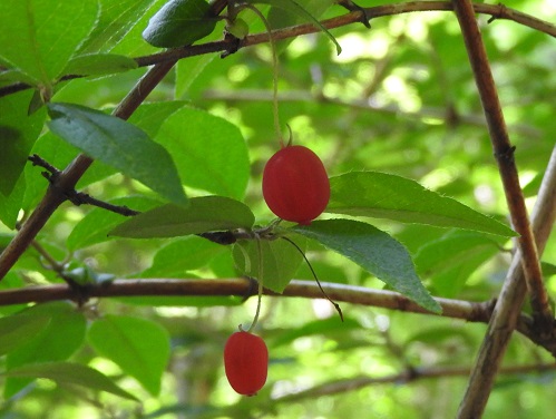 液果は直径約1cmの楕円形で6月に赤く熟します。