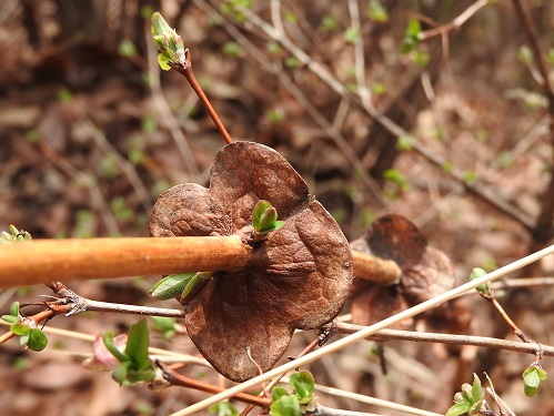 徒長枝では葉柄基部が広がり、対の葉柄が合着して繋がり円盤状になるのが本種共通の特徴です。