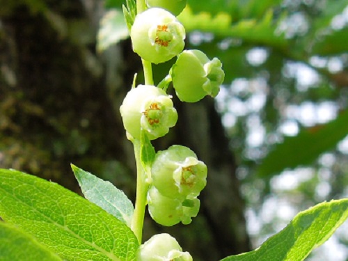 開花時期は6~7月で、枝先に長い花序をだし、淡緑色の小さな花が下の方から咲きます。