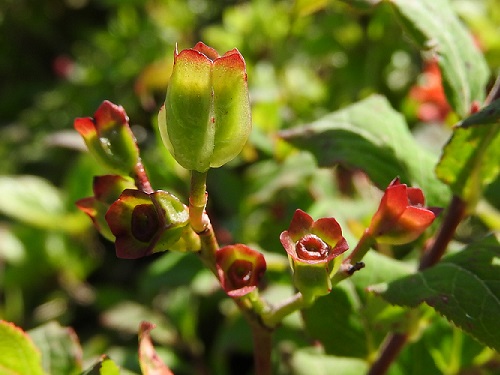 花が咲くとスノキとウスノキの区別はこの稜の有無によってできます。