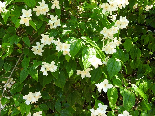 花期は6月頃で、枝先に花弁が4枚の白い花を5~9個付けます。