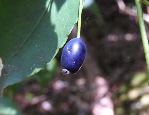 果実は7~8mmの細長い楕円形で、10~11月に黒紫色に熟します。