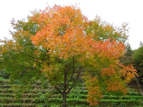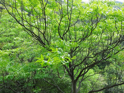 藩政時代に木蝋を採取するために植栽されたものが逸出したといわれていますが、現在では自然植生によく溶けこんでいます。