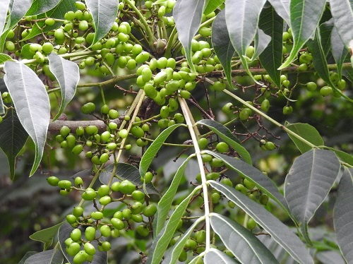 葉は長さ25~40cmの奇数羽状複葉で互生し、小葉は4~8対、長さ5~12cmで全縁(鋸歯がない)です。