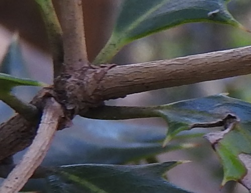 ヒイラギの葉は成長に従い、葉の縁の刺状の歯牙がなくなり、全縁(鋸歯がない)の葉が増えます。
