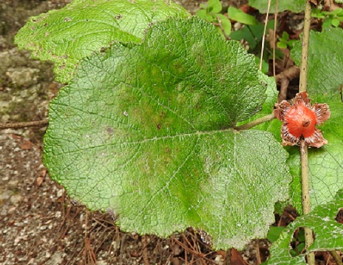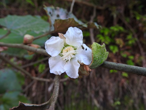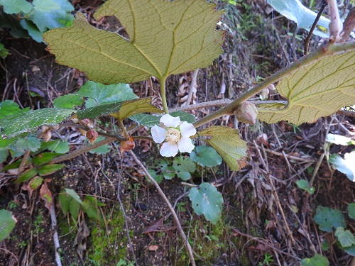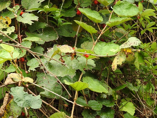 葉身は8~17cmと常緑キイチゴ類の中で最大の葉で、全体的に丸い形をしていてます。