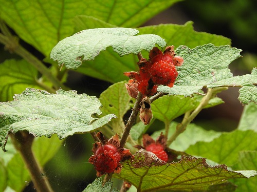 梅雨の頃に直径2.5~3cmの球形で、5~8月に赤く熟した果実をつけます。果実は甘くて美味しい。