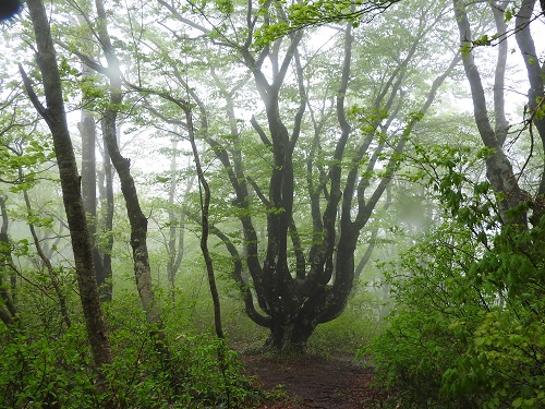 不思議な形をしたブナです。おそらく過去に何度も伐採されてその後何度も切り株からひこばえが出て