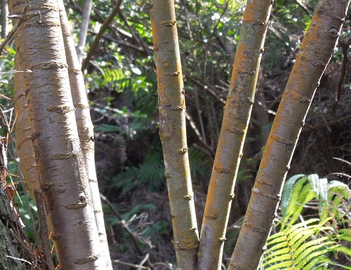 濃い褐色色で皮目が横に筋となって目立ちサクラの樹皮に似ていますが、横筋はサクラほど多くないので慣れれば違いは判ります。
