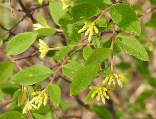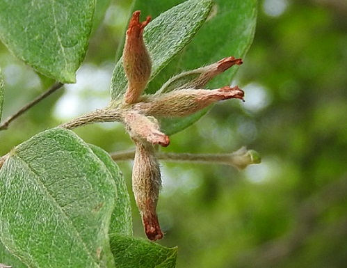 葉は全縁で互生し、両面に白い絹毛がある。葉身長は3~5cmの卵形または卵状披針形で、縁は全縁です。