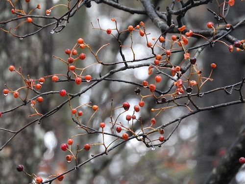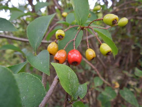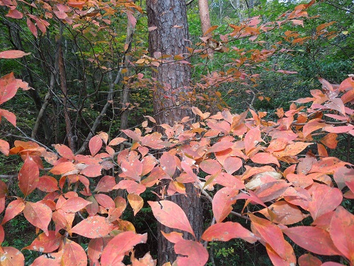 カマツカの紅葉ですが、真っ赤ではなく少しオレンジ色に紅葉しています。