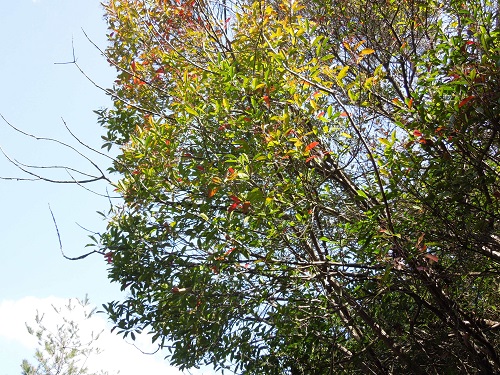 若葉は赤みを帯び綺麗ですが、野生種は園芸種(レッドロビン)ほど新芽の赤は鮮やかではありません。