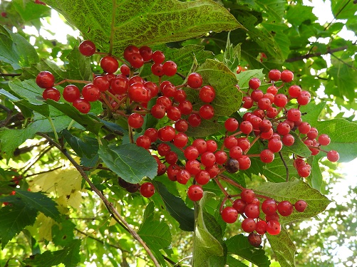 八幡湿原にはカンボクの樹が非常に多く自生しており、花が咲く時期と真っ赤な実を付ける時期には素晴らしい景観が見られます。