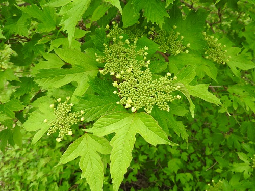 開花時期は5~7月で、枝先に直径10cmほどの散房花序をだし、小さな花を多数つけます。