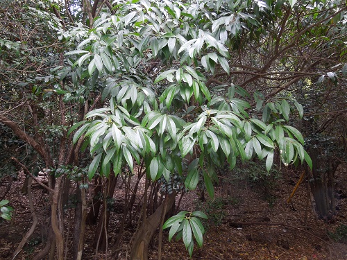 沿岸地域から山地の常緑樹林内に自生し、樹高は10~15mになります。