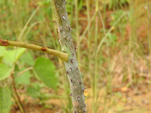 幹にも刺が生えますが、この写真くらいの太い幹になると、刺は剥がれ落ち刺の基部だけがこぶのように残ります。