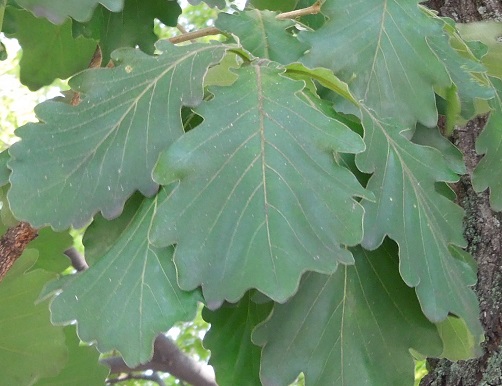 ブナ科の中で最大になる葉で、鋸歯は丸く尖らず大きな波状で、葉柄はほとんどなく葉裏や枝は著しく毛が多い点で明瞭に見分けられます。