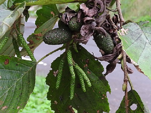 ヤマハンノキは中国山地に稀に分布しますが、砂防用の逸出か本来の自生かどうか不明です。