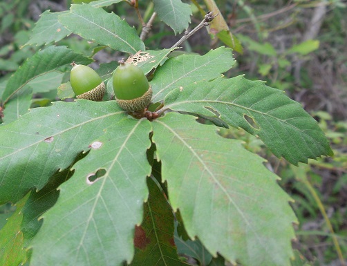 コナラはどんぐり(実が堅果)のなる最もポピュラーな樹で、同じ仲間のミズナラに比べて標高の低い山に普通に自生しています。