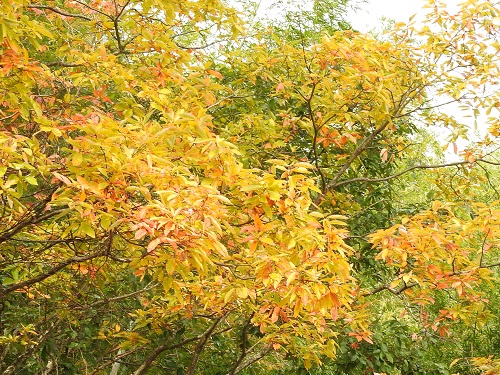 黄色から赤色に色付ている樹の多くはコナラです。