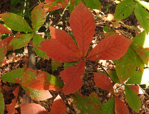 色付き始めたコナラの葉ですが、このような様々な色に変化して目を奪われます。
