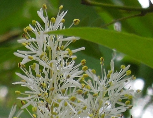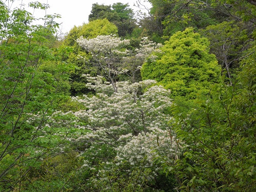 マルバアオダモの花は1つ1つの花弁は細くてボリュームはありませんが房状に集まって咲くので樹全体が花に包まれ見ごたえのする樹です。
