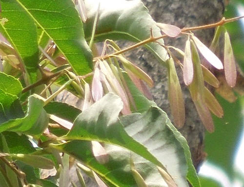 果実は2~2.7cmの線形の翼果で、ひとつの果序に多数の果実を付けます。