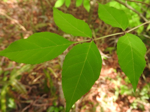 葉は長さ10~20cmの奇数羽状複葉で対生し、小葉は普通2対ですが、ときに3対の葉が混じり、基部の小葉ほど丸みが強いことが特徴です。
