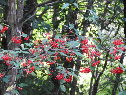 果実は6から9mmの卵形で、晩秋に光沢のある鮮やかな赤色に熟します。実は甘酸っぱく、酸味が効いた薄紅色の果実酒できます。