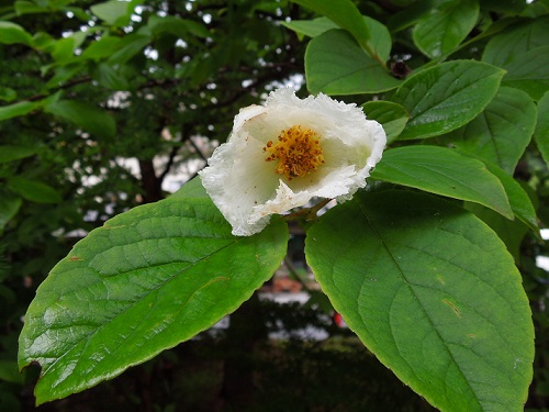 大きさ5cm前後の純白で気品のある5弁花を咲かせます。花の大きさはヒメシャラより大きい。