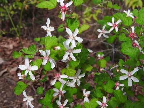 花期は4~5月で、ナガバモミジイチゴに少し遅れて、直径2~2.5cmの細い花弁の白色の花を短い枝の先に上向きに1個付けます。