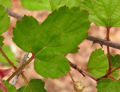 徒長枝では大型でやや深く裂けた葉が付き、花の付く枝では小型でほぼ不分裂の葉も多く見られます。