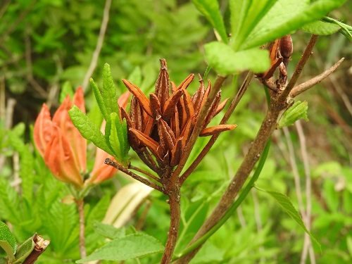葉は互生します。葉の表面は皺がよっているのがよく判り、レンゲツツジの大きな特徴です。