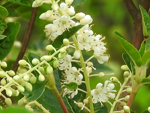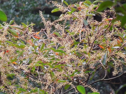 開花時期は7~9月で、枝先に総状花序を円錐状にだし、小さな花をたくさん付けます。