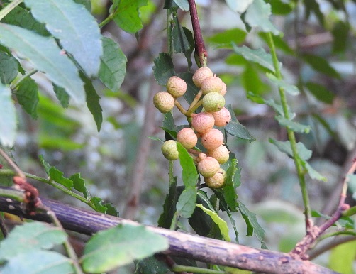 サンショウは雌雄別株で、雌株の自生は専門書によれば少ないそうです。