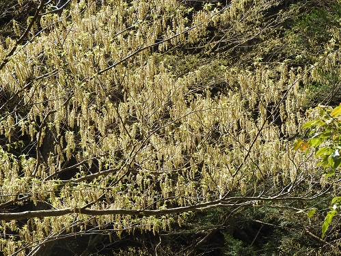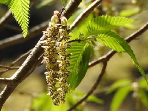 開花時期は4~5月で、緑黄色の雄花序を前年枝から、緑色の雌花序を本年枝の先から垂れ下げます。